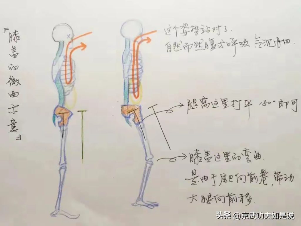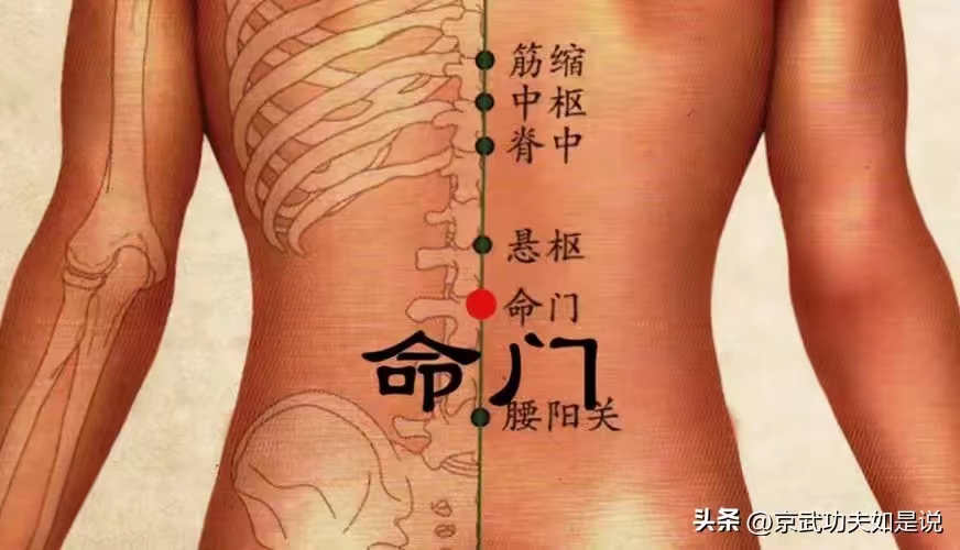 开命门的关键在松腰敛臀,腹部松沉,尾闾尖向下,这时命门处放松。